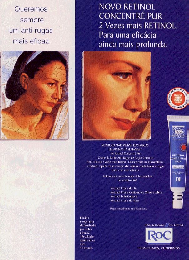 antitética. As rugas são representadas pelo verniz estalado dos quadros