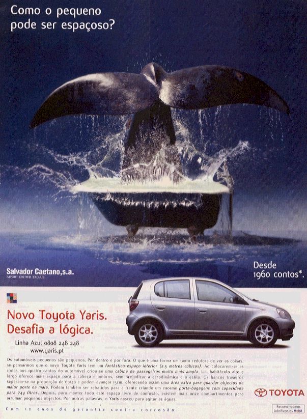 físicas do produto anunciado, o seu tamanho, pondo em cena, em